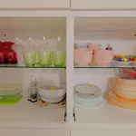 Obiekt noclegowy oferuje również pełnowymiarową kuchnię z kuchenką mikrofalową, lodówką i szklanymi naczyniami, a także urządzenie do parzenia kawy/herbaty.